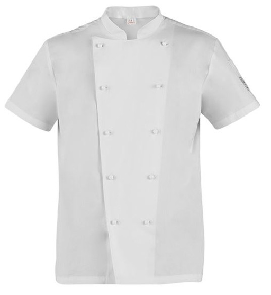 La giacca da cuoco Tommaso a manica corta presenta l’abbottonatura doppio petto, il collo arrotondato, e un porta penne sulla manica sinistra. Presenta una vestibilità Slim Fit e si caratterizza per i bottoni estraibili che predominano sulla pettorina davanti. La giacca è realizzata in tessuto 100% cotone nella variante bianca, e nel 65% poliestere 35% cotone nella variante nera. Ha la variante manica lunga nella giacca Adriano.
