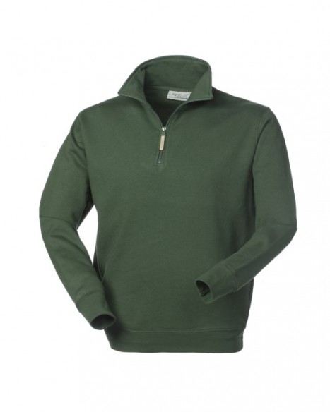 Felpa a collo alto con para sudore interno nel collo. Chiusura a cerniera al centro corta, tessuto elastico al girovita e ai polsi.